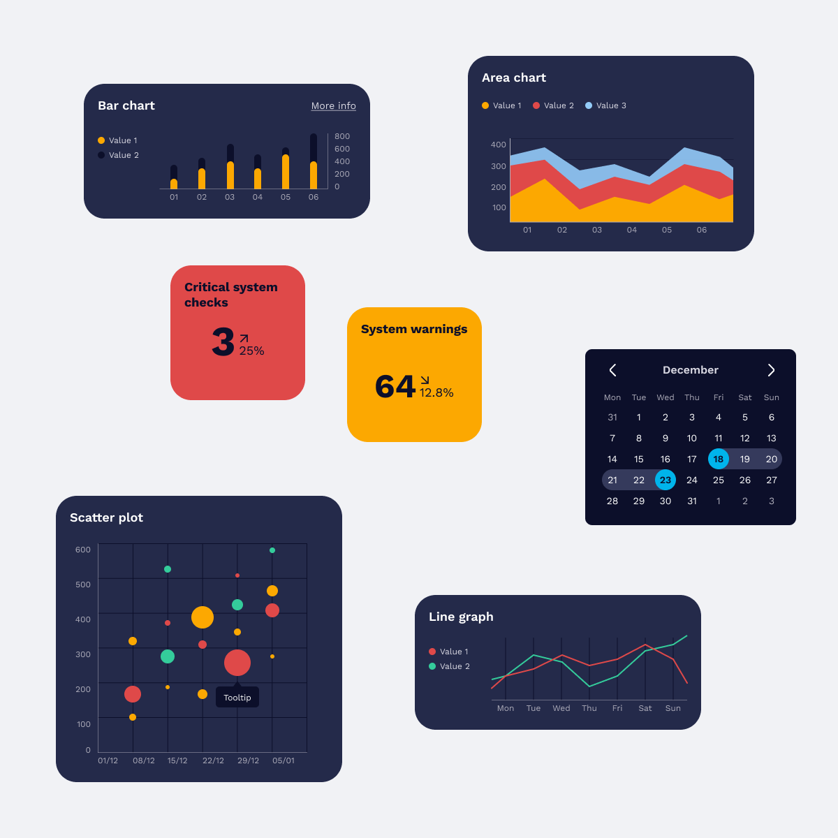 Due to the scale of the project, my team focussed our efforts on a twenty pages style guide that set principles for how the interface should look and feel. The guide covered the appearance and interactive principles for all core interface elements, such as colour, typography, grid, buttons and links, forms, cards, lists, modals, search, navigation and customisation principles, data visualisation and more.