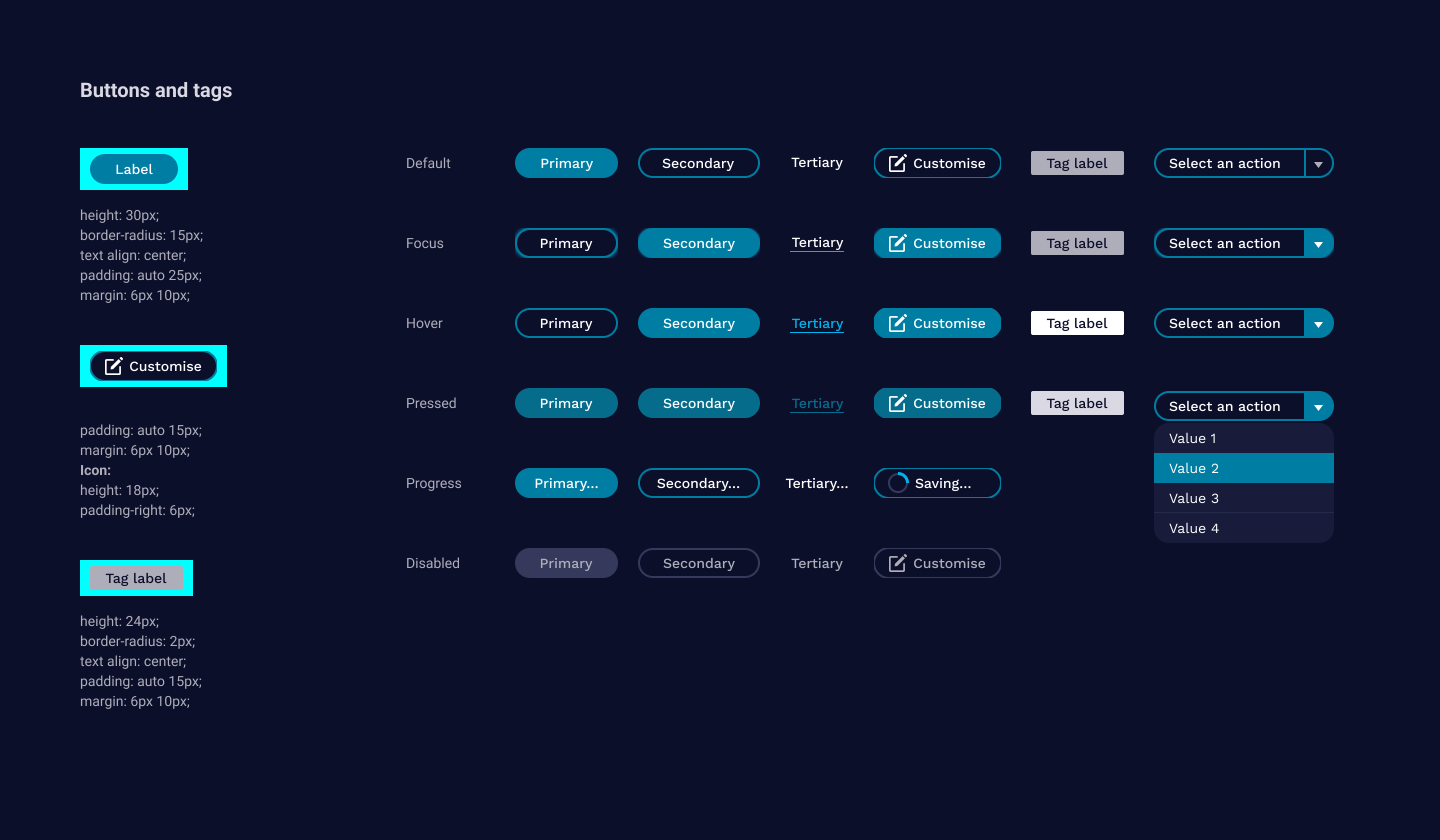 Guidelines on the style, layout and interactive principles for buttons and tags